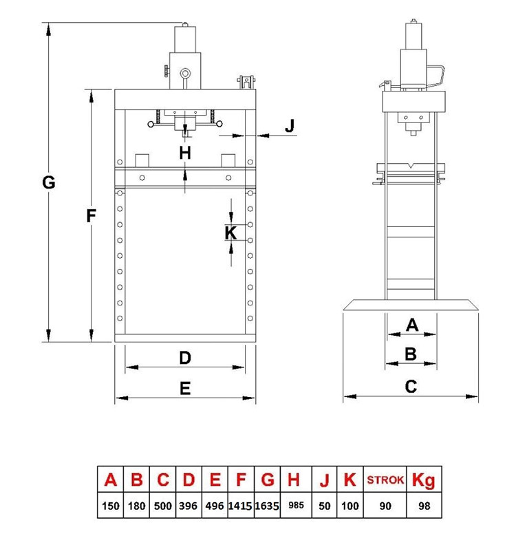 15 Ton Uzun Tip Kollu Hidrolik Pres