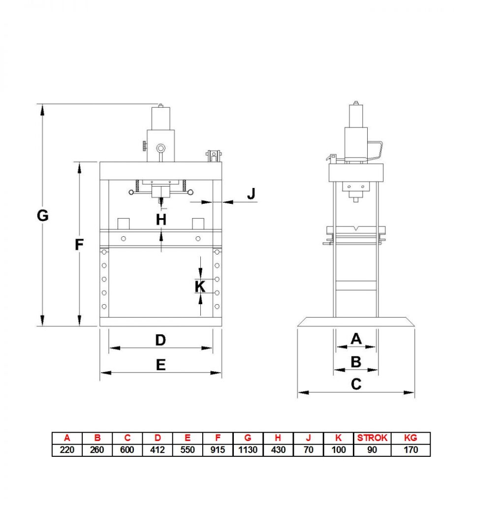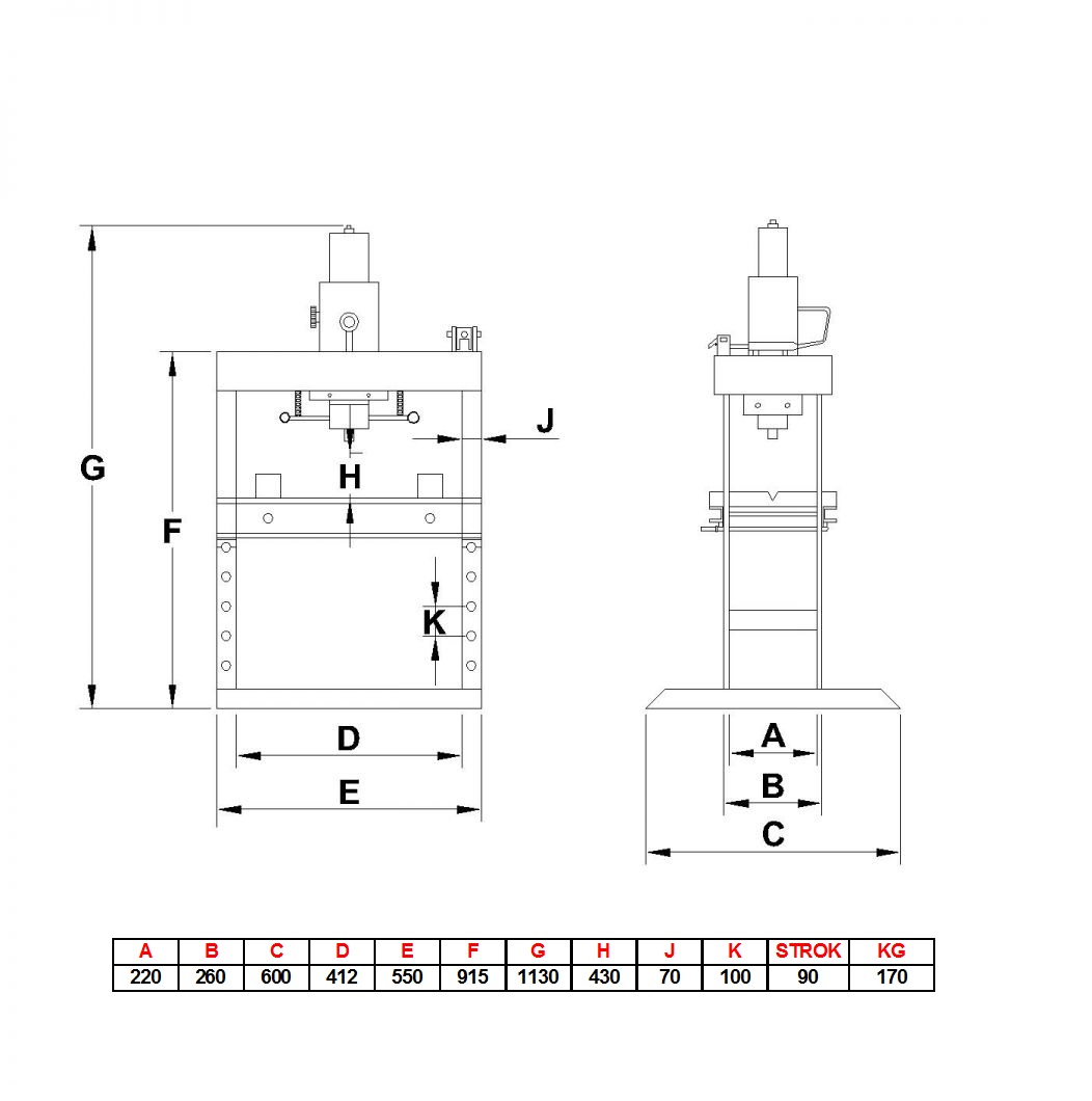 50 Ton Kısa Tip Kollu Hidrolik Pres