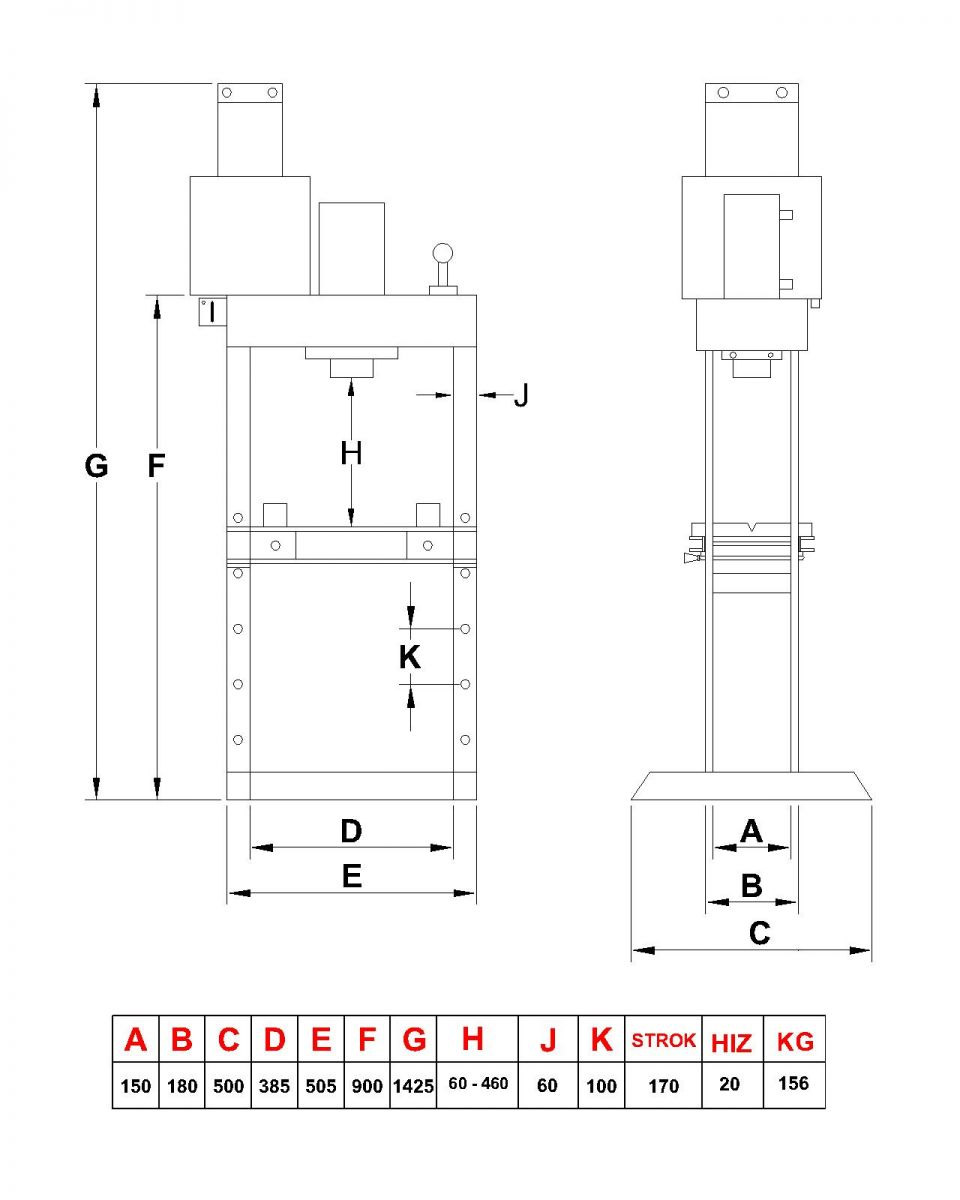 15 Ton Kısa Tip Motorlu Hidrolik Pres