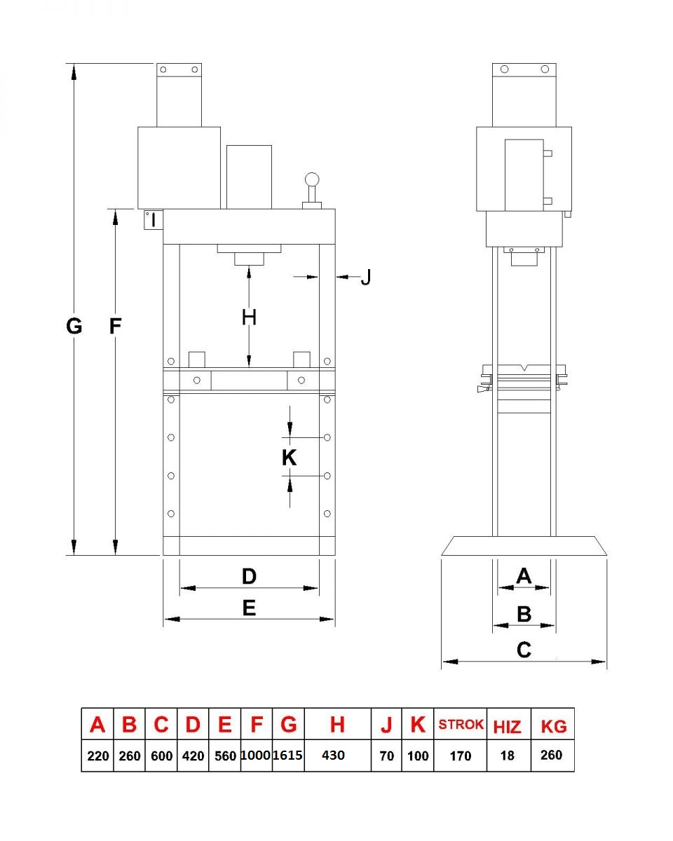 30 Ton Kısa Tip Motorlu Hidrolik Pres